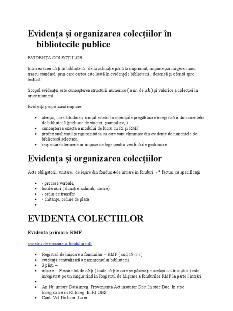 Evidenţa Si Organizarea Colecţiilor In Bibliotecile Publice