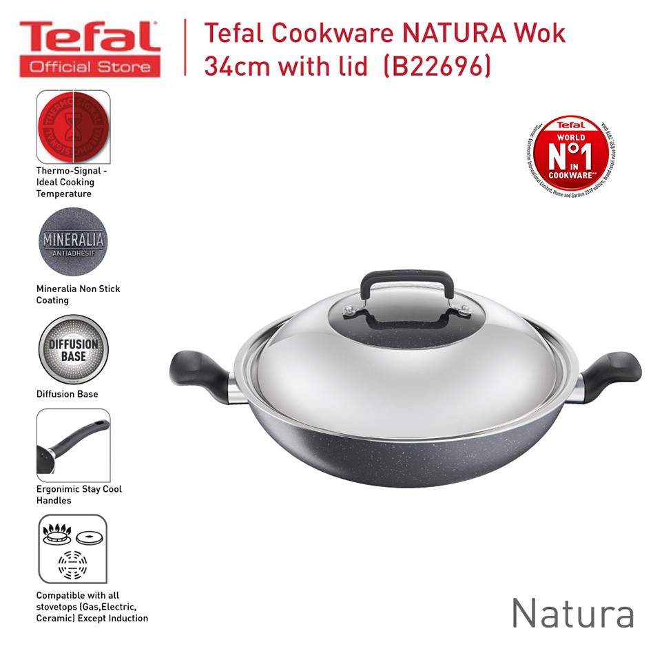 Ready Stock Tefal Natura 34cm Non Stick Wok With S S Lid Wokpan